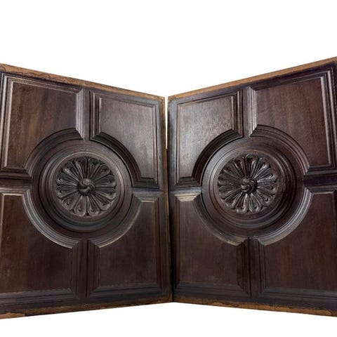Udskåret panel oprindeligt fra et interiørelement. Møbel eller dekor til en arkitektonisk konstruktion.