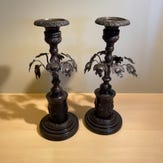 Lysestage - Patineret bronze - Bronze girandole med skarpe glasdråber