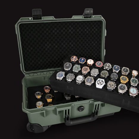 Indestructible Watch Suitcase for 50 Watches - Timepiece Valet 50 with Wheels...