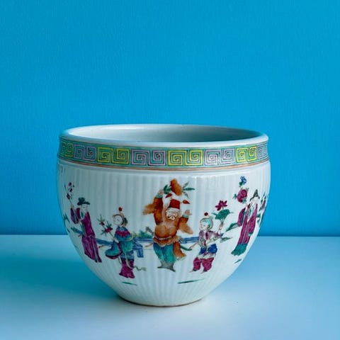 Kinesisk spyttepotte i porcellæns-familie rose, Republikken (1912–1949), dekoreret med “Hundred Flowers”-mønsteret og med seks-tegns Jiaqing-mærke; højde ca. 8 cm, oprindelse Kina, i god stand, original/official. Klik på den blå "gå til varen" knap, for at købe eller byde på denne vare. Den samlede pris vil blive vist inden du afgiver dit bud.