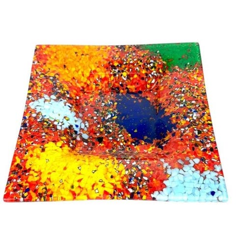 Centerpiece og asckebæger i Murano-stil glas, cirka 25 x 25 x 6 cm, vægt 1,8 kg, fra 1960'erne–1970'erne, i god brugt stand med let aldersrelaterede tegn. Klik på den blå "gå til varen" knap, for at købe eller byde på denne vare. Den samlede pris vil blive vist inden du afgiver dit bud.