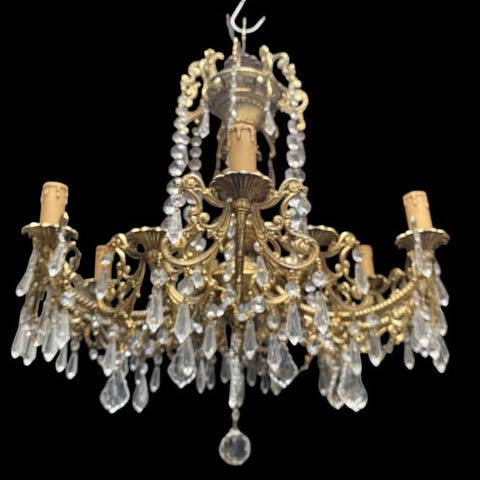 Lysekrone - Krystal, Messing, Bronze - Gammel lysekrone