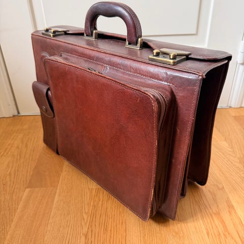 Brics er et stort italiensk mærke inden for skindbearbejdning. Maxibag med nøglesnor og støttende fødder. Tegn på brug gennem tiden; tasken er vintage, hvilket fremgår af billederne. Blødt læder i en smuk farve, med gyldne detaljer. Pragtfuld!