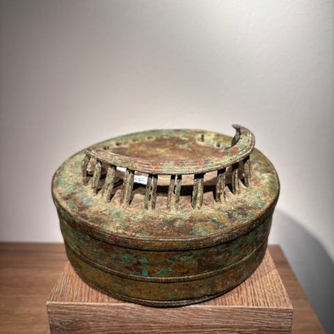 Kassens kant er fint udformet med geometriske og blomsteragtige motiver.