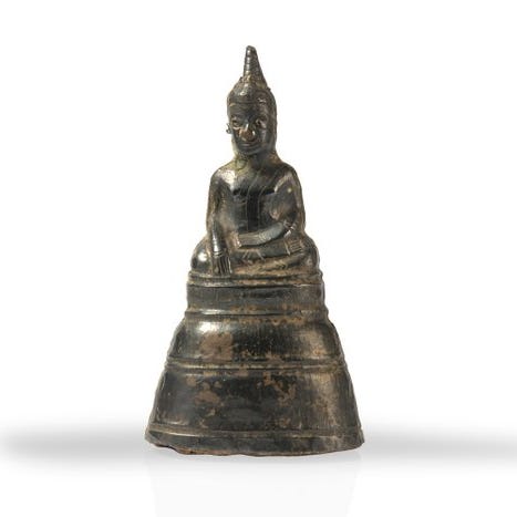 Magnifik buddhistisk skulptur i forgyldt bronze. Oprindeligt fra Rattanakosin-perioden (midt i det 20. århundrede).