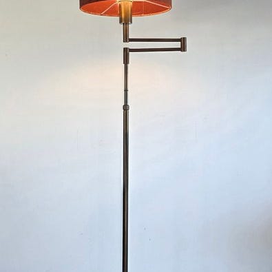 Bronzelampekrog i Art Nouveau-stil, støbt i Frankrig, med cremefarvet glaslampeskærm med slebne blomster, én E27-fatning, mål: 65 cm høj, 28 cm bred, plafondkap 10 cm, glaslampens højde 23 cm, vægt 1400 g, i god brugt stand og i funktion. Klik på den blå "gå til varen" knap, for at købe eller byde på denne vare. Den samlede pris vil blive vist inden du afgiver dit bud.