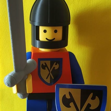 Jeg sælger fra min samling en 3D-printet og manuelt efterbehandlet statue af de klassiske LEGO Castle-legetøj, gengivet i PLA-plast, cirka 35 cm høj.