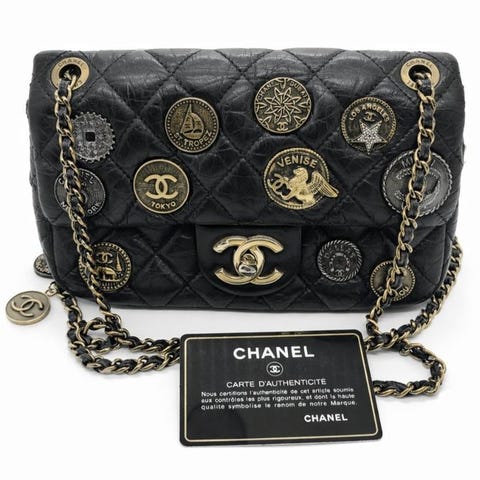 Chanel mini flap med perlekranshank, sort læder med forgyldt metal og faux perle, 9 cm høj og 12 cm bred, leveres med støvpose og identitetskort, ægthedskode 31401727, et stykke, i god brugt stand. Klik på den blå "gå til varen" knap, for at købe eller byde på denne vare. Den samlede pris vil blive vist inden du afgiver dit bud.