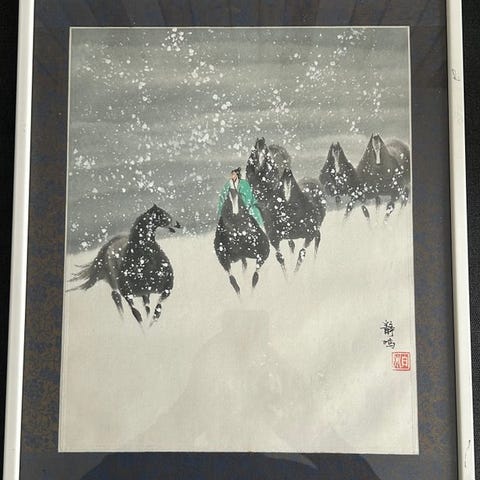 En fornøjelig samling af ni malerier på pergamentpapir, hvoraf hver bærer kunstnerens stempler, dateret til slutningen af 1700-tallet eller begyndelsen af 1800-tallet, og underskrevet af den berømte kunstner fra Qing-dynastiet, GaiQi 改骑.