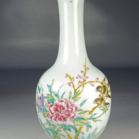 Meget sjælden og flot kinesisk famille-rose porcelæns-vase fra Qianlong-perioden! Stativet er ikke inkluderet!