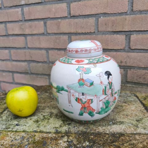 Ingefær krukke - Porcelæn - Grøn familie ingefærpot