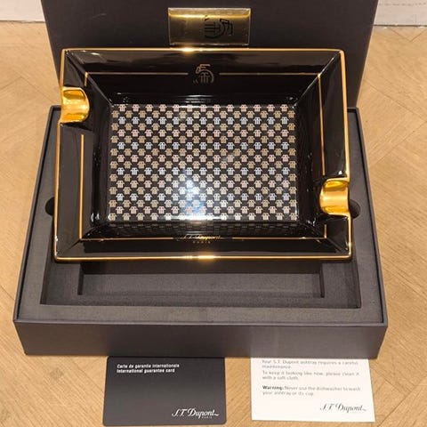 S.T. Dupont Memento Mori porcelænsaskebæger i næsten nyskick, Art Deco stil, sort og rød, oprindelse Frankrig, målene 17 × 22 × 4 cm, med garantikort og fakturereference 006494. Klik på den blå "gå til varen" knap, for at købe eller byde på denne vare. Den samlede pris vil blive vist inden du afgiver dit bud.