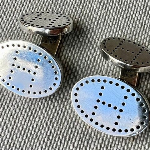 Et eksklusivt og meget sjældent par hornformede manchetknapper i sterlingsølv fra Hermes.