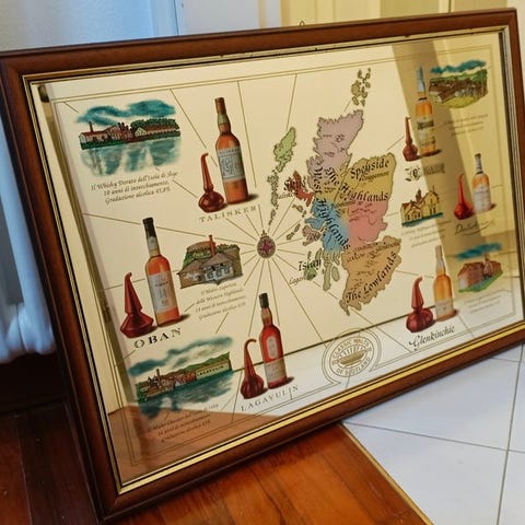 Vintage reklamespejl for Molinari Sambuca Extra. Det drejer sig om originale reklame-tryk, sandsynligvis udklip fra magasiner fra 70'erne. Ting af modernart og samlergenstande, perfekte for retrodesign-elskere, samlere af alkoholmemorabilia eller til at indrette steder og barer i vintage stil.