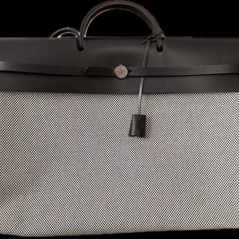 Hermes Hermès Herbag 50 Limited Edition Red Striped D-etched Handbag med lille indre rum til nøgler viser tydelige tegn på brug.