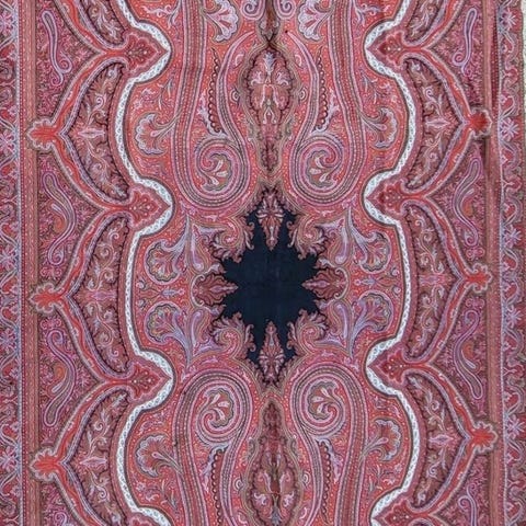 Stof og håndværk: Forskellige væveteknikker bruges på kroppen og ærmerne. De geometriske blomster-motiver på den røde panel, de diamant-formede (geometriske) mønstre på de øverste ærmer og