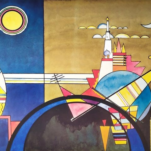 Efter hans tilbagevenden til Tyskland i slutningen af 1921, fik Kandinsky en invitation til at blive lærer ved Bauhaus i Weimar. Dette var en eksperimentel skole/studie, hvor et nyt undervisningssystem blev anvendt til uddannelsen af mestere. Grundlæggeren, Walter Gropius, forkyndte ideen om en syntese af kunsten, idet han bemærkede, at malerkunst, arkitektur og skulptur skulle kombineres for at skabe et “byggeri af fremtiden”. I manifestet fra 1919 udtalte han: “det endelige mål med al uddannelsesaktivitet er det at bygge!”