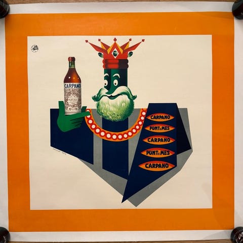 titel: reklameplakat - Carpano Brindisi med Kong Vittorio - Armando Testa