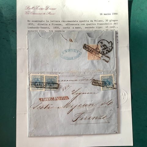Geografisk oprindelse: Antikke italienske stater – Toscana; Titel: Postforbindelser mellem Toscana og Kongeriget Napoli; Tilstand: brugt til post med adresse og med underskrifter af A. Diena og Raybaudi. Klik på den blå "gå til varen" knap, for at købe eller byde på denne vare. Den samlede pris vil blive vist inden du afgiver dit bud.
