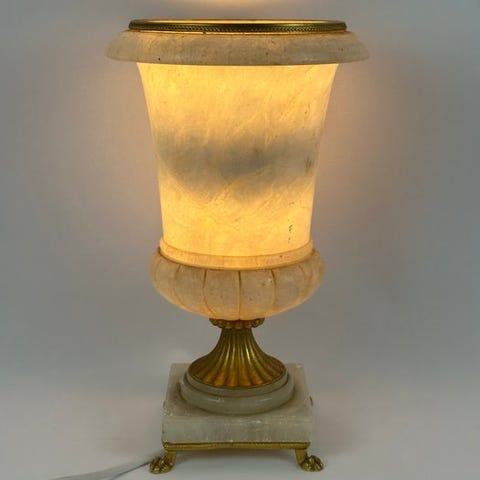 Et par porcelænsvaselamper i Louis-Philippe-stilen fra det 19. århundrede, hver cirka 28,5 cm høje med en bredde på 15 cm og en dybde på 13,5 cm, oprindelse Europa, ikke i funktion og uden lampeskærme, forsiden har farverige malerier og motiver, bagsiden blomsterbuketter, påklistrede blomster og dekorativ forgyldning, den ene lampe i meget god stand, den anden med brugsspor og limede revner øverst. Klik på den blå "gå til varen" knap, for at købe eller byde på denne vare. Den samlede pris vil blive vist inden du afgiver dit bud.
