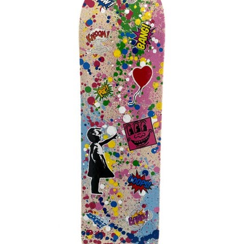 Denne fantastiske 3D popart-skulptur er en eksklusiv 1/1-version. Med Banksy, Warhols ikoniske figurer på den er dette et fantastisk blikfang.