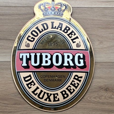 En smuk emaljeret reklameplade for Hoegaarden-Ølmærket, et særligt sjældent eksemplar på markedet. Med flotte, meget blanke farver, emalje af høj kvalitet og en tyk metalplade.