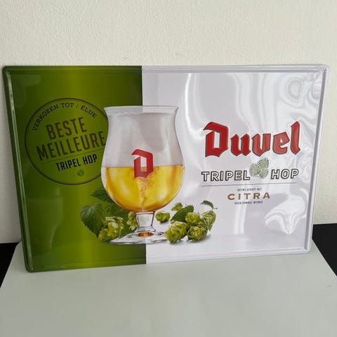 Duvel reklameskilt i cortenstål, 2 mm tyk, med tre hængeskruer på bagsiden ætset i epoxy, lavet i Belgien, fra 2020 og fremefter, original/officiel, mål 51 × 37 × 5 cm, vægt 845 g. Klik på den blå "gå til varen" knap, for at købe eller byde på denne vare. Den samlede pris vil blive vist inden du afgiver dit bud.