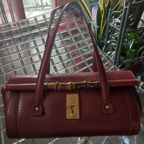 Gucci Bamboo backpack i sort læder med naturlige bambusdetaljer og hardware i guldton, måler 30 x 32 x 12 cm, ét stykke, i meget god stand. Klik på den blå "gå til varen" knap, for at købe eller byde på denne vare. Den samlede pris vil blive vist inden du afgiver dit bud.