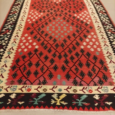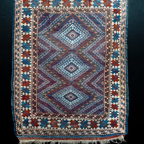 Denne chuval har god farve og tydning. Den har tydeligvis været i brug i hjemmet, bevaret i dag som den blev fundet i en tyrkisk landsby. Skadedyr har bidt huller i bunden for at få adgang til indholdet, stykket er ikke åbnet op, og de warp-faced plainweave-skæfter, der blev brugt til at løfteTasken, er stadig intakte. Den blev købt sammen med