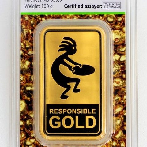 For de 50g Ansvarligt-Guld-barrer anvendes udelukkende Valcambi Green Gold, som er udvundet fra særligt certificerede minedrift i Nevada.