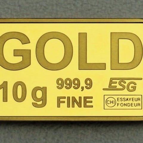 Et forseglet ESG/Valcambi guldbars på 10,0 g med fineness 999,9, mål 5,2 x 7,4 cm og samlet vægt 10 g. Klik på den blå "gå til varen" knap, for at købe eller byde på denne vare. Den samlede pris vil blive vist inden du afgiver dit bud.