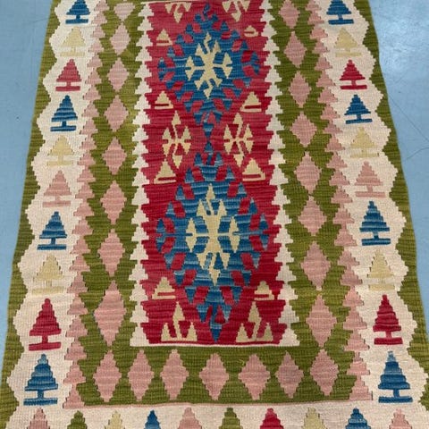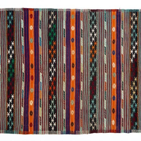 Vi præsenterer et ægte anatolisk kilim vævet i hånden i Tyrkiet mellem 1950 og 1960.