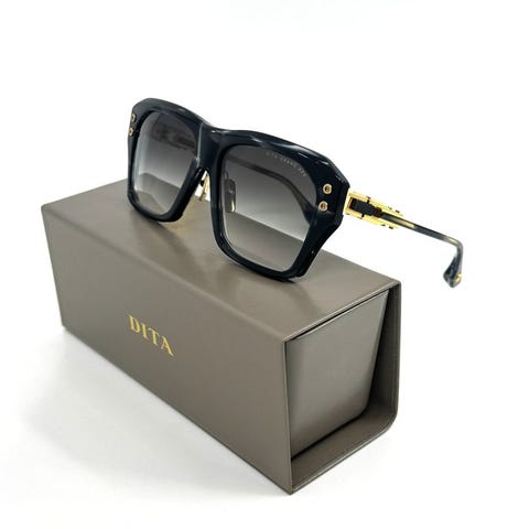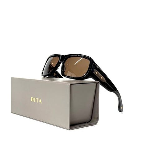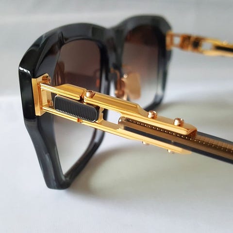 Håndlavede solbriller med en særlig tyk ramme med indlagt 316L-metal. Speciel hængelplade fra Dita.