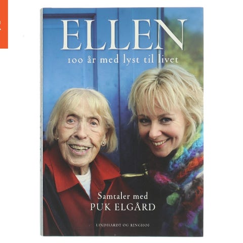 Puk Elgard "Ellen – 100 år med lyst til livet" bog. Biografisk samtalebog på dansk om Ellen, der fortæller om sit lange liv, erfaringer og livssyn gennem samtaler med Puk Elgard. Velegnet til læsere med interesse for biografier, livshistorier og personlige fortællinger.