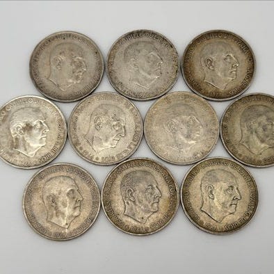 Enestående commemorativ samling med titlen "Historia de la Peseta", slået af Fábrica Nacional de Moneda y Timbre (FNMT) - Real Casa de la Moneda. Dette sæt er en numismatisk rejse gennem Spaniens historie, fra den Provisoriske regering (1869) til Juan Carlos I-æraen, der nøjagtigt gengiver de mest ikoniske stykker i vores numismatik.
