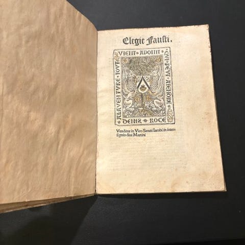 Post incunabel udgave af Epistolae af Ovidius i vulgær italiensk oversat af Domenico da Montic(i)ello, trykt i Venedig hos Melchior Sessa i 1508, pergamentbind, håndfarvede illustrationer og bord, 80 sider, 216 x 169 mm, i god stand. Klik på den blå "gå til varen" knap, for at købe eller byde på denne vare. Den samlede pris vil blive vist inden du afgiver dit bud.