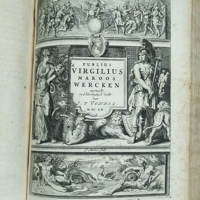 To bindoplag af Joost van den Vondel Treurspelen, Amsterdam, udgivet af A. de Wees/Widow A. de Wees i midten af det 17. århundrede, ensartet samtids vellumbind, originalt sprog hollandsk, ca. 1650'erne, ca. 250 sider i alt, 16 dele i vol. 1 og 15 dele i vol. 2, med tre graverede frontispicer og 31 næsten identiske træsnit-trykkermærker. Klik på den blå "gå til varen" knap, for at købe eller byde på denne vare. Den samlede pris vil blive vist inden du afgiver dit bud.
