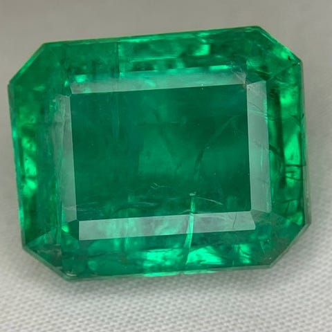 Smaragd, 1 sten, samlet vægt 5,89 ct, naturlig fra Zambia, IGI-certifikat 743537513, oliebehandling, gennemsigtig med moderat klarhed, rektangulær pudeformet form, fremragende snit og blandet snit. Klik på den blå "gå til varen" knap, for at købe eller byde på denne vare. Den samlede pris vil blive vist inden du afgiver dit bud.
