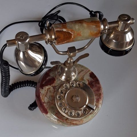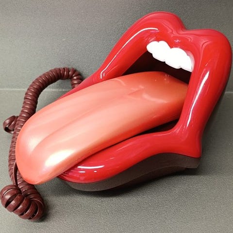 Vintage telefon med Rolling Stones-logo, et sjældent og dekorativt samlerobjekt.