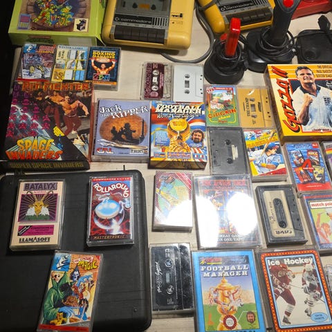 Commodore 64 med spil og tilbehør, årgang 1982, i meget god stand, i funktion, original æske, inkluderer brugsanvisninger og Commodore-garantiark, mange kassetter, nogle med låg, kassetteafspiller fungerer, kabler medfølger. Klik på den blå "gå til varen" knap, for at købe eller byde på denne vare. Den samlede pris vil blive vist inden du afgiver dit bud.