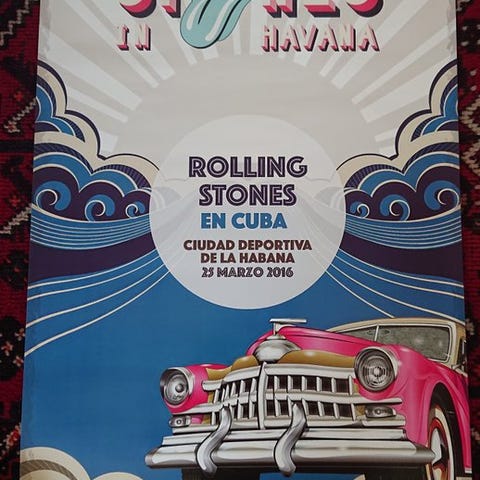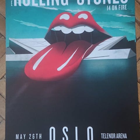 Sensationel plakat fra 1918 af Rolling Stones-koncerten i Manchester. Originale frimærker. Med fotos. Mål: 68 × 50 cm. Sendes i et stift rør, ideelt til transport.