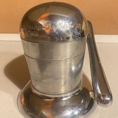 Vintage, et flot blikfang i køkkenet eller baren til at knuse is til drinks. Den er særligt eftertragtet af samlere af Omre-artikler.