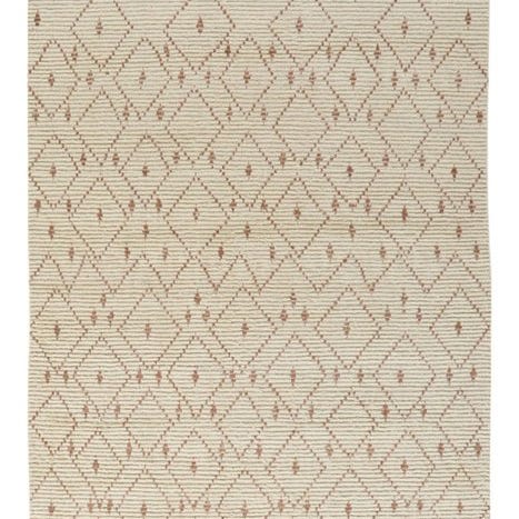 Ægte vintage marokkansk Beni Ouarain-tæppe, håndvævet i Atlasbjergene. Dette tæppe har en blød cremet uldbaggrund, fremhævet af markante diamantmotiver.