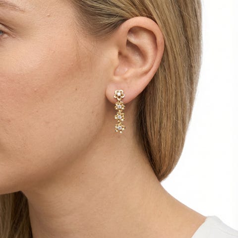 Ørehængere i rødguld med to diamanter og perler.