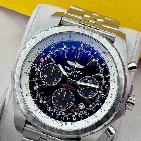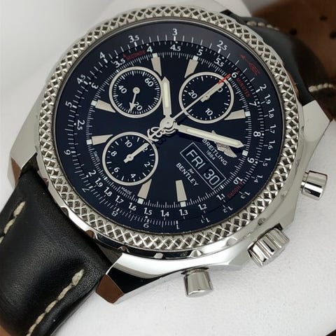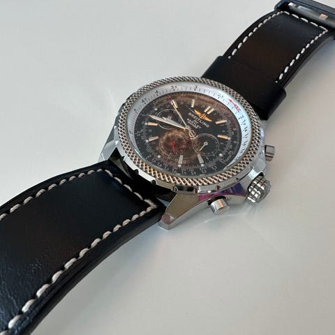 Breitling Bentley B06 Chronograph 49 ur med rustfrit stål, kasse på 49 mm, automatisk urværk, sort værk, lang læderrem i stål, model AB0611/AB061112/BC42, produceret 2000–2010, æske og garanti inkluderet men uden papirer, i meget god stand med mindre brugsspor. Klik på den blå "gå til varen" knap, for at købe eller byde på denne vare. Den samlede pris vil blive vist inden du afgiver dit bud.