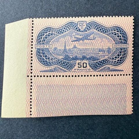 Frankrig, Poste Aérienne n° 15, 50f burelé, Neuf avec trace de charnière propre, underskrevet Calves. Klik på den blå "gå til varen" knap, for at købe eller byde på denne vare. Den samlede pris vil blive vist inden du afgiver dit bud.