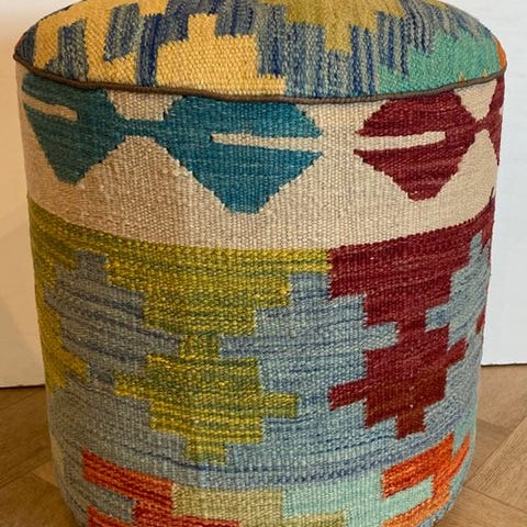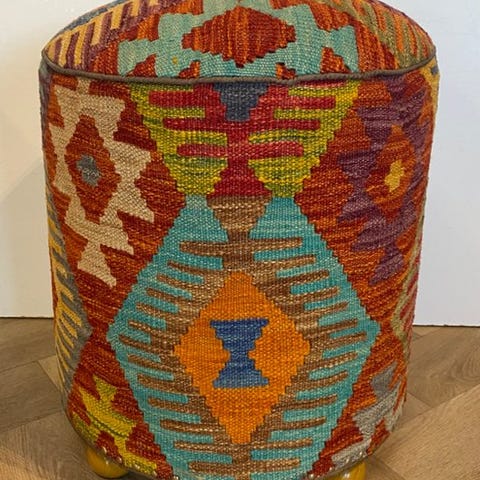 Denne autentiske puf/stol/sofa er lavet af 100% håndvævet kilim og benene er af træ. Meget ideel til din stue, soveværelse eller køkken.
