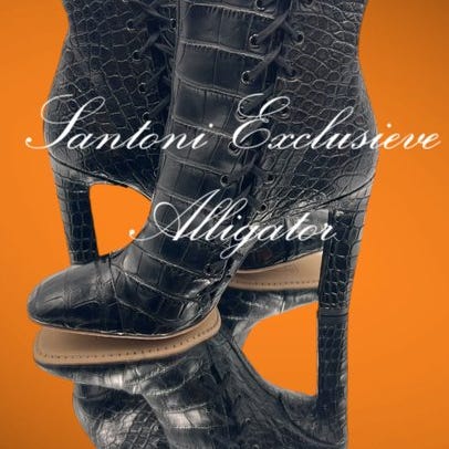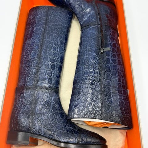 Santoni Alligator grå stiletter støvler til kvinder, størrelse 37, nye i æske, fremstillet i Italien. Klik på den blå "gå til varen" knap, for at købe eller byde på denne vare. Den samlede pris vil blive vist inden du afgiver dit bud.