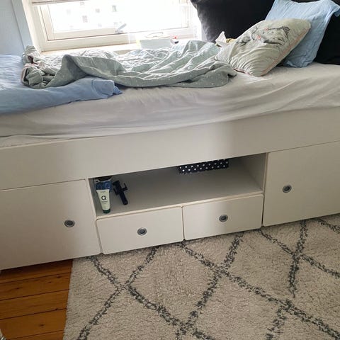 Seng med opbevaring og topmadras sælges