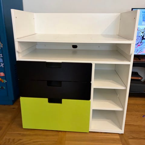 Puslebord, ikea Småstad hvid med grå skuffer. 90x79x100 cm